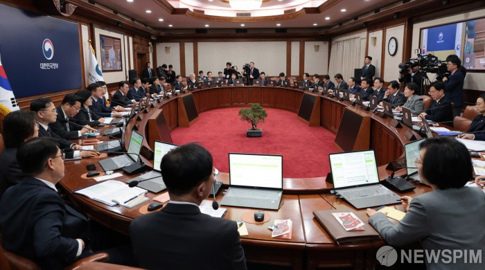 [서울=뉴스핌] 이길동 기자 = 김민석 국무총리가 25일 서울 종로구 정부서울청사에서 열린 국무회의를 주재하며 모두 발언을 하고 있다. 2025.11.25 gdlee@newspim.com