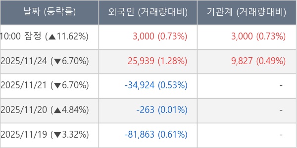 ※ 사모펀드 등 일부 기관의 순매매량은 표시되지 않음