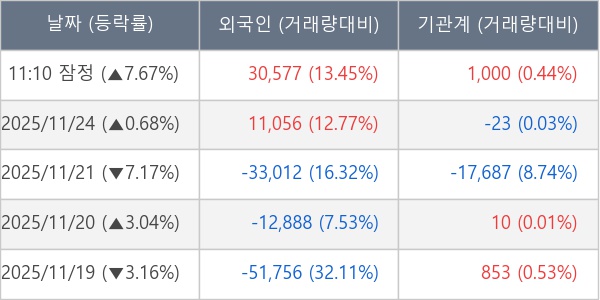 ※ 사모펀드 등 일부 기관의 순매매량은 표시되지 않음