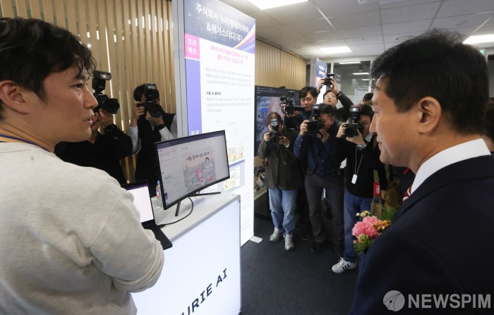 [서울=뉴스핌] 최지환 기자 = 오세훈 서울시장이 25일 오후 서울 서초구 서울 AI허브 메인센터에서 열린 서울산업AX혁신센터 출범식에 앞서 AX 스타트업 부스들을 살펴보고 있다. 2025.11.25 choipix16@newspim.com