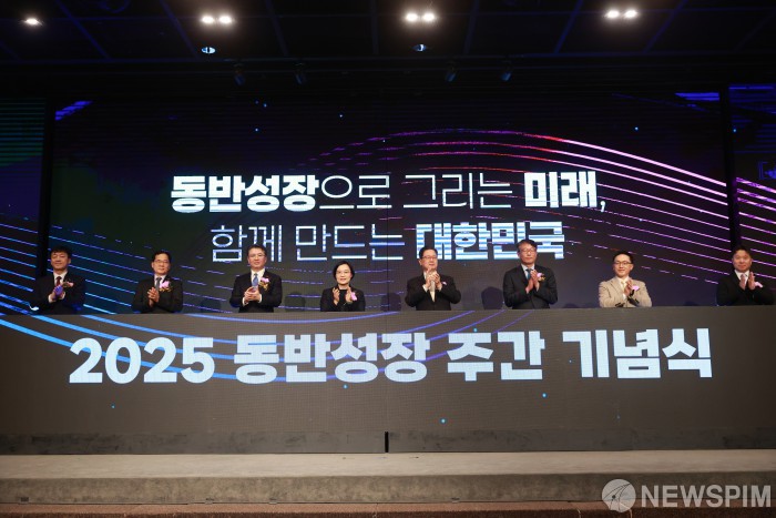 [서울=뉴스핌] 한성숙 중소벤처기업부 장관(왼쪽에서 네 번째)이 25일 서울 영등포구 중소기업중앙회에서 열린 '2025 동반성장 주간 기념식'에서 이달곤 동반성장위원장(왼쪽에서 다섯 번째)을 비롯한 참석자들과 기념촬영을 하고 있다. [사진=중소벤처기업부] 2025.11.25 photo@newspim.com