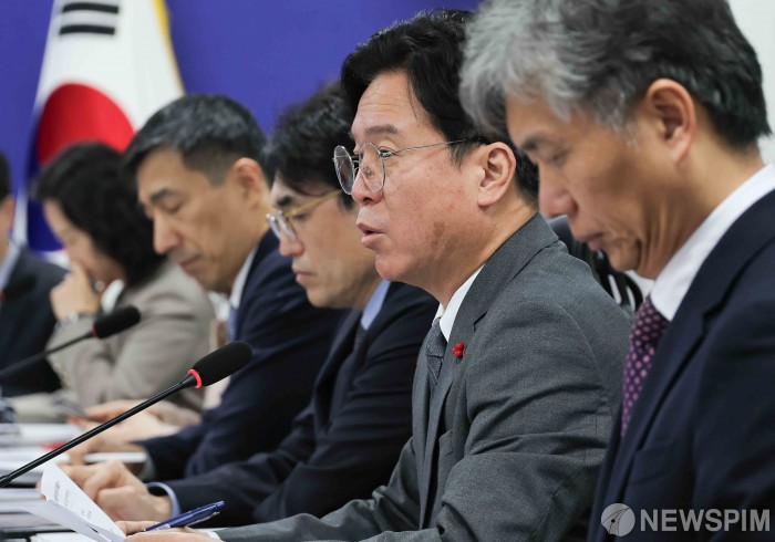 [서울=뉴스핌] 윤창빈 기자 = 김영훈 고용노동부 장관이 26일 서울 여의도 국회 의원회관에서열린 당정 협의회에서 모두발언을 하고 있다. 2025.11.26 pangbin@newspim.com