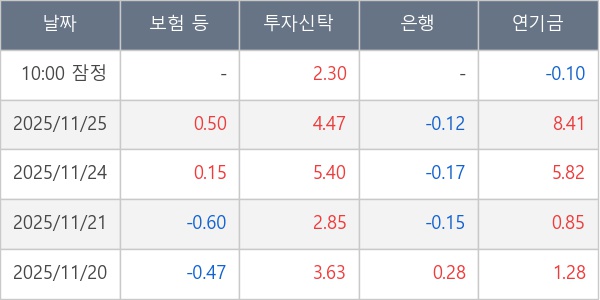 [표] 주요 기관별 순매매량 (단위 만주)