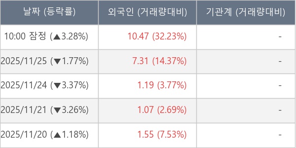 [표] 외국인ㆍ기관 순매매량 (단위 만주)