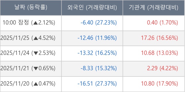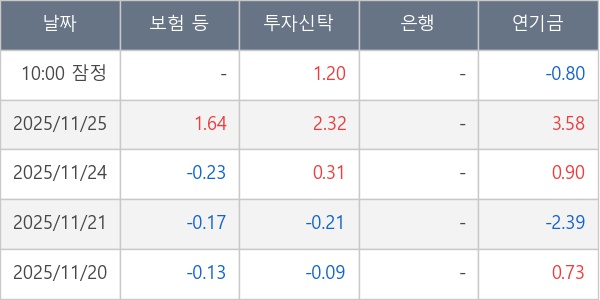 [표] 주요 기관별 순매매량 (단위 만주)