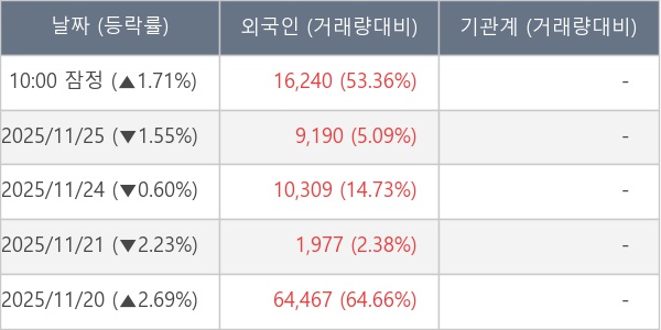 [표] 외국인ㆍ기관 순매매량 (단위 주)