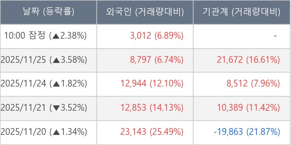 [표] 외국인ㆍ기관 순매매량 (단위 주)