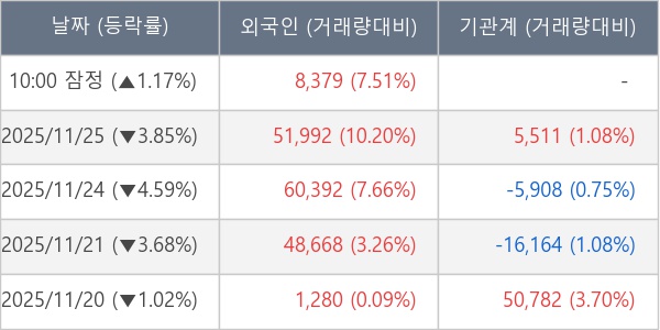 [표] 외국인ㆍ기관 순매매량 (단위 주)