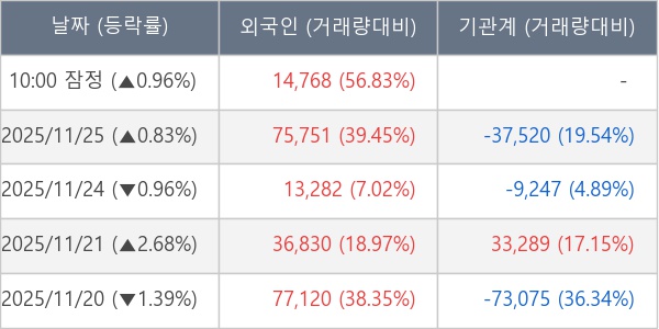 [표] 외국인ㆍ기관 순매매량 (단위 주)