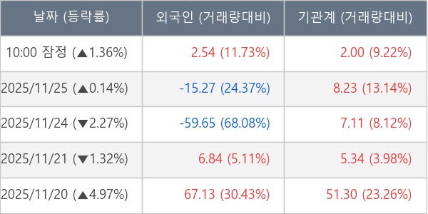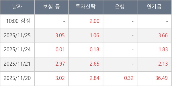 [표] 주요 기관별 순매매량 (단위 만주)