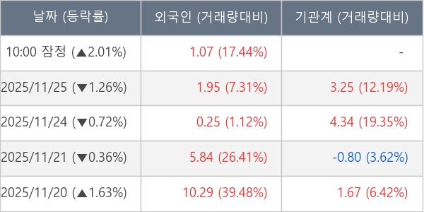 [표] 외국인ㆍ기관 순매매량 (단위 만주)