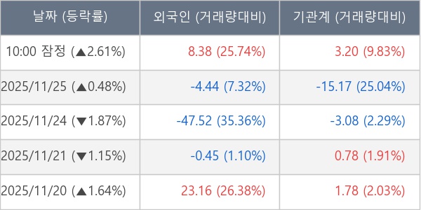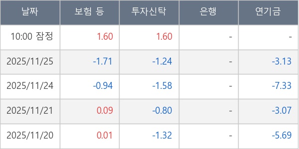 [표] 주요 기관별 순매매량 (단위 만주)