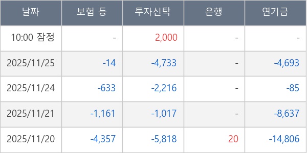 ※ 사모펀드 등 일부 기관의 순매매량은 표시되지 않음