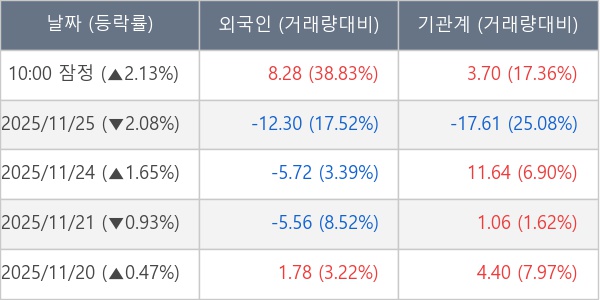 ※ 사모펀드 등 일부 기관의 순매매량은 표시되지 않음
