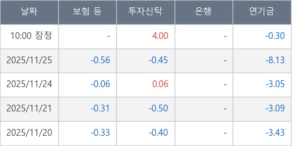 [표] 주요 기관별 순매매량 (단위 만주)