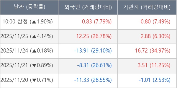 ※ 사모펀드 등 일부 기관의 순매매량은 표시되지 않음