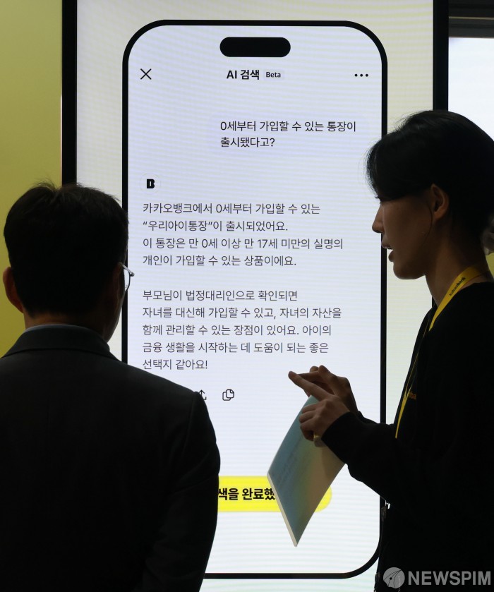 [서울=뉴스핌] 김학선 기자 = 26일 서울 서초구 aT센터에서 열린 코리아 핀테크 위크 2025에서 참가자들이 카카오뱅크 AI 서비스를 체험하고 있다. 역대 최대 규모인 128개 기업·기관이 참여하는 이번 박람회는 '핀테크×AI, 금융에 취향을 더하다'를 주제로 3일간 진행된다. 2025.11.26 yooksa@newspim.com