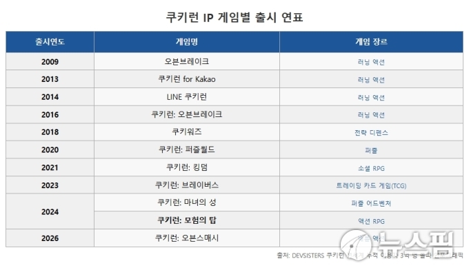 쿠키런은 2009년 모바일 러닝 게임 '오븐브레이크' 출시 이후 16년간 역할수행게임(RPG), 퍼즐 어드벤처, 협동 액션 등 다양한 장르로 게임 플레이 경험을 강화해왔다.