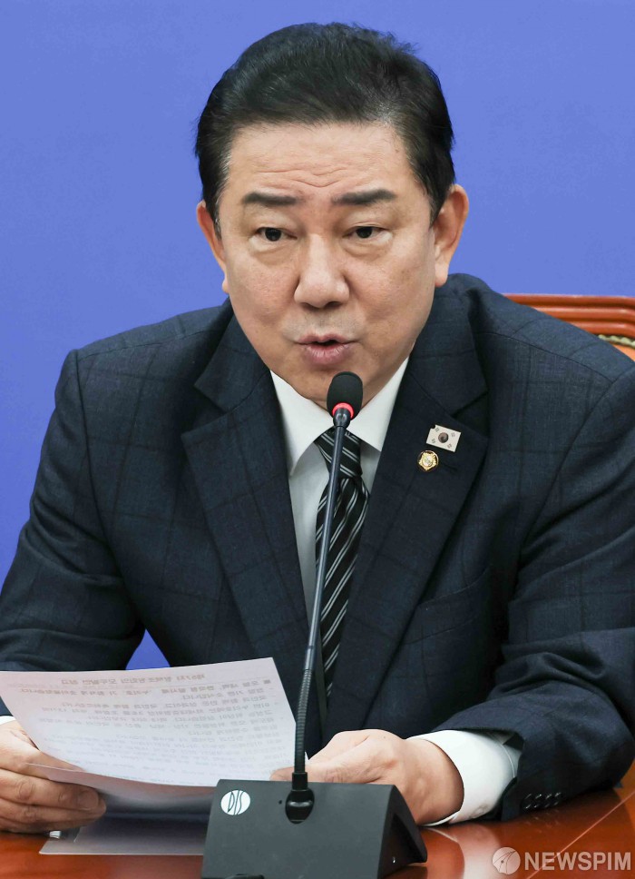 [서울=뉴스핌] 윤창빈 기자 = 김병기 더불어민주당 원내대표가 27일 서울 여의도 국회에서 열린 정책조정회의에서 모두발언을 하고 있다. 2025.11.27 pangbin@newspim.com