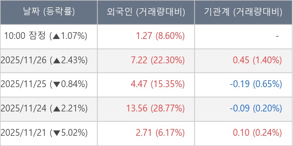 [표] 외국인ㆍ기관 순매매량 (단위 만주)