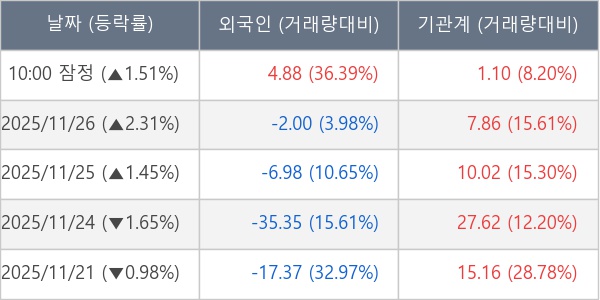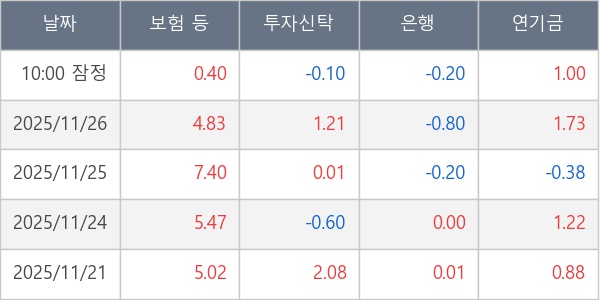 ※ 사모펀드 등 일부 기관의 순매매량은 표시되지 않음