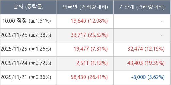 [표] 외국인ㆍ기관 순매매량 (단위 주)