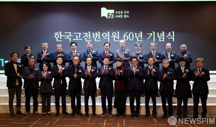 [서울=뉴스핌] 최교진 교육부 장관이 27일 서울 종로구 HW컨벤션센터에서 열린 한국고전번역원 60년 기념식에서 참석자들과 기념촬영을 하고 있다. [사진=교육부] 2025.11.27 photo@newspim.com
