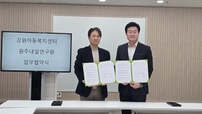 [원주=뉴스핌] 이형섭 기자 = 사단법인 원주내일연구원과 굿네이버스 강원아동복지센터는 27일 강원특별자치도 내 요보호 아동, 학대피해 아동, 돌봄취약 아동의 건강한 성장을 위한 업무협약을 체결했다고 밝혔다.