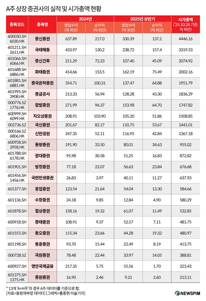 하지만, 주가 흐름은 실적과 괴리를 보였다. 올해 들어 상하이종합지수, 선전성분지수, 창업판지수의 상승률은 각각 17.28%, 24.64%, 42.06%를 기록했지만, CSI300(滬深∙후선300지수, 상하이∙선전 양대 증시 상장사 중 일정 규모와 유동성을 보유한 300개 대형 종목의 주가를 반영해 산출한 지수) 중 비(非)은행 금융지수(증권∙보험)의 상승률은 같은 기간 5.81%에 그쳤다.