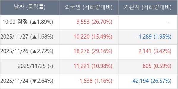 [표] 외국인ㆍ기관 순매매량 (단위 주)