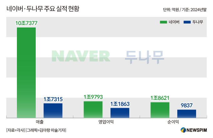 지난해말 기준 네이버는 10조7377억원의 매출을 기록했다. 1조7315억원 기록한 두나무와 약 6배 차이다.