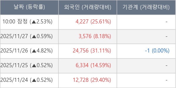 [표] 외국인ㆍ기관 순매매량 (단위 주)