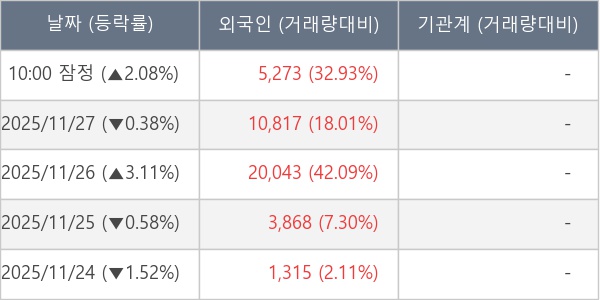 [표] 외국인ㆍ기관 순매매량 (단위 주)