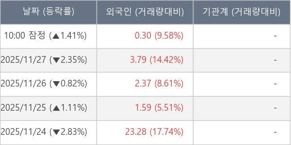 [표] 외국인ㆍ기관 순매매량 (단위 만주)
