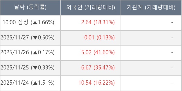 [표] 외국인ㆍ기관 순매매량 (단위 만주)