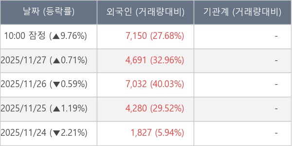 [표] 외국인ㆍ기관 순매매량 (단위 주)