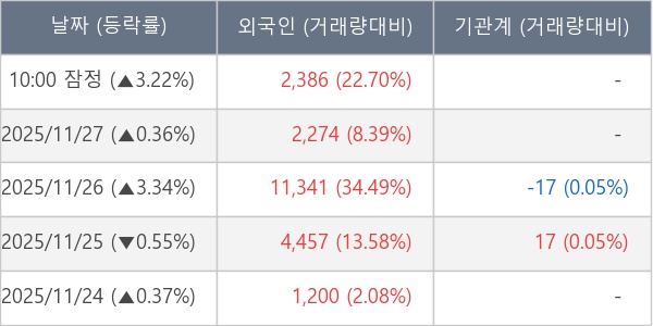 [표] 외국인ㆍ기관 순매매량 (단위 주)