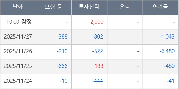 ※ 사모펀드 등 일부 기관의 순매매량은 표시되지 않음