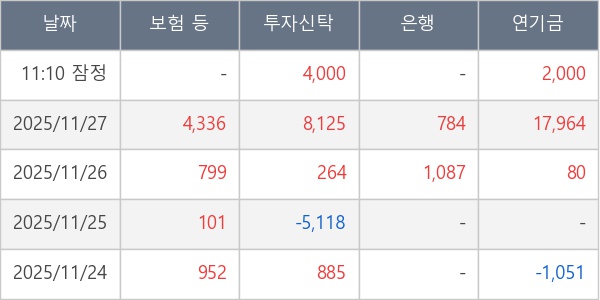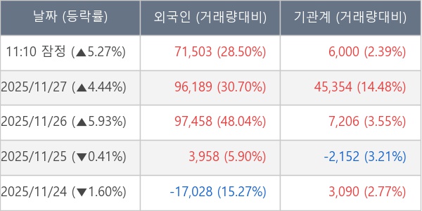 ※ 사모펀드 등 일부 기관의 순매매량은 표시되지 않음