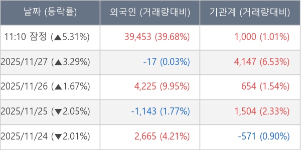 ※ 사모펀드 등 일부 기관의 순매매량은 표시되지 않음