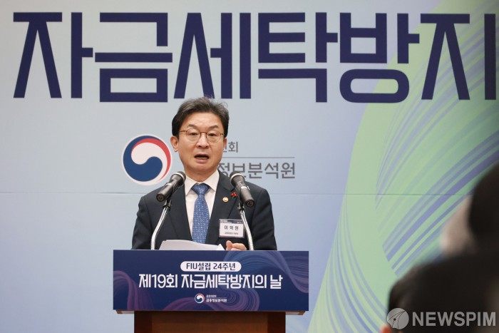 자금세탁방지의 날 기념식, 기념사 하는 이억원 금융위원장