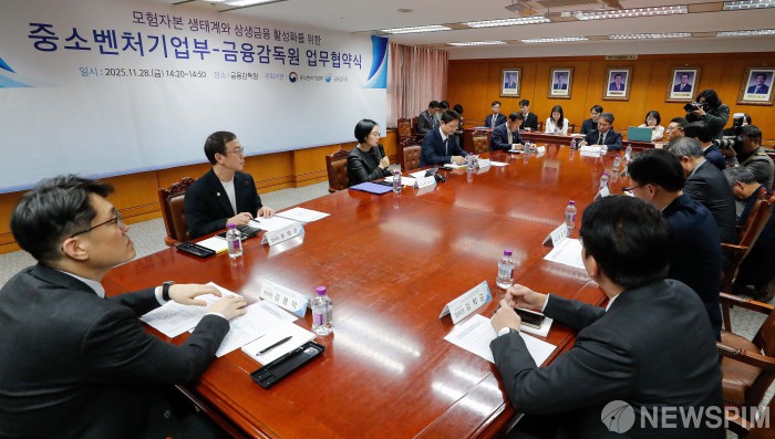 [서울=뉴스핌] 류기찬 기자 = 28일 오후 서울 영등포구 금융감독원에서 '모험자본 생태계와 상생금융 활성화를 위한 중소벤처기업부-금융감독원 업무협약식'이 진행되고 있다. 2025.11.28 ryuchan0925@newspim.com