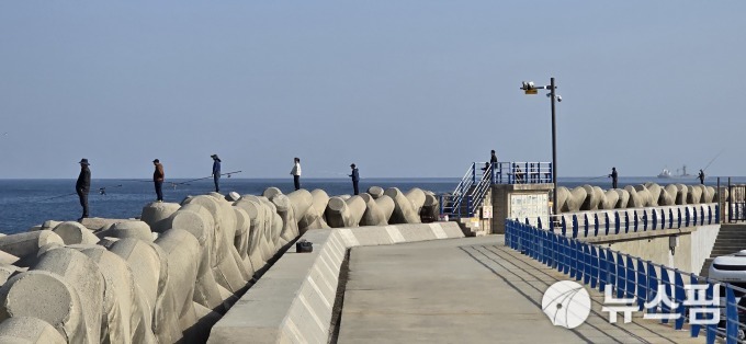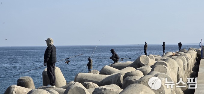 | [동해=뉴스핌] 이형섭 기자 = 동해시 대진항 방파제에서 숭어 낚시에 나산 낚시객들. 2025.11.30 onemoregive@newspim.com |