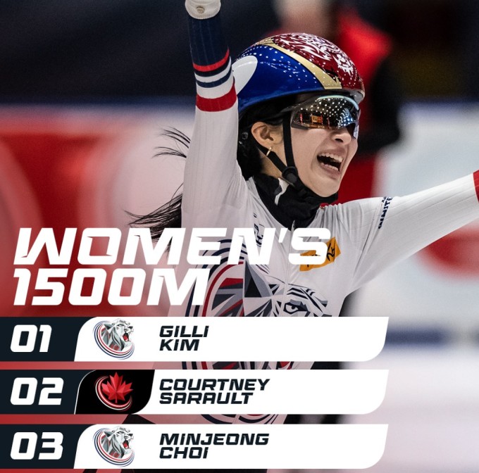 | ISU 쇼트트랙 월드투어 4차 대회 여자 1500m 우승자 김길리. [사진=ISU] |
