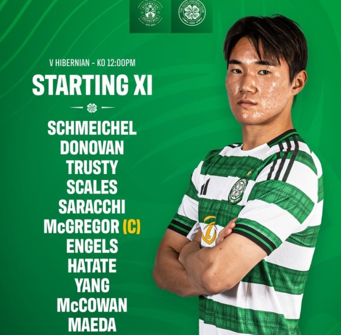 | 하이버니언 원정에 왼쪽 윙어로 선발 출전한 양현준. [사진=셀틱FC] |
