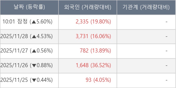 [표] 외국인ㆍ기관 순매매량 (단위 주)