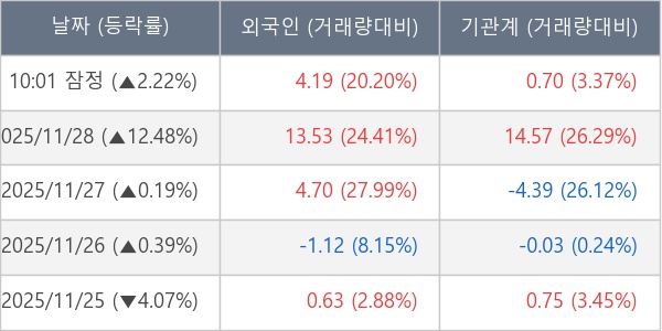 [표] 주요 기관별 순매매량 (단위 만주)