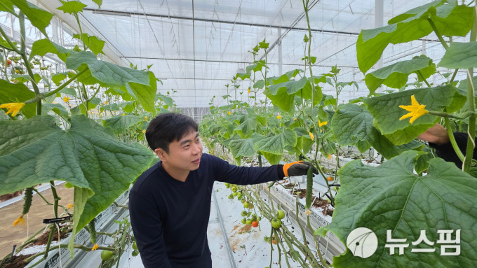 | 임대형 스마트팜에서 조인준 청년이 오이를 첫 출하했다.[사진=장수군]2025.12.01 gojongwin@newspim.com |