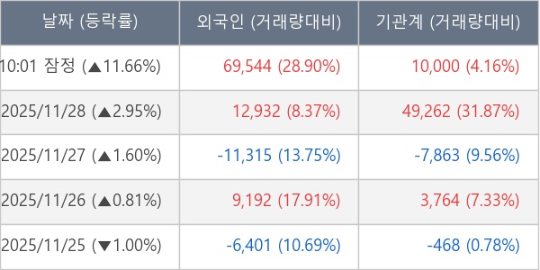 ※ 사모펀드 등 일부 기관의 순매매량은 표시되지 않음