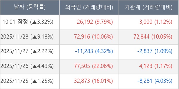※ 사모펀드 등 일부 기관의 순매매량은 표시되지 않음